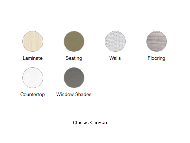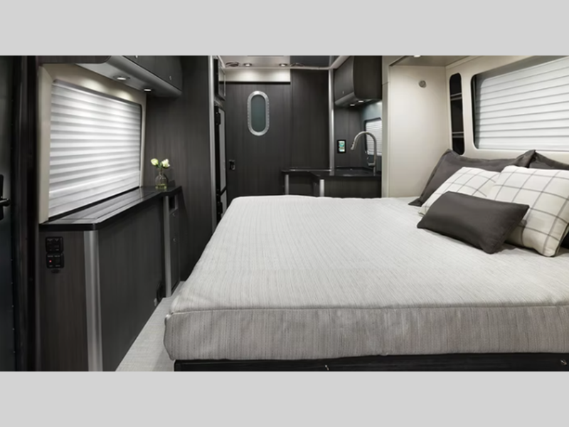 Sleeps 2 Slides 1 Length 24 ft 9 in Ext Width 7 ft 11 in Ext Height 10 ft 6 in Int Height 6 ft 6 in Interior Color Modern Greige, Classic Canyon, Formal Black, Tommy Bahama Special Edition Exterior Color Iridium Silver Metallic Hitch Weight 4000 lbs GVWR 12125 lbs Dry Weight 10129 lbs Cargo Capacity 1996 lbs Fresh Water Capacity 20 gals Grey Water Capacity 31 gals Black Water Capacity 27 gals Furnace BTU 19000 btu Generator 3.6 kW LP with Remote Start Fuel Type Diesel Engine Mercedes-Benz 2.0L 4-Cylinder High Output Chassis Mercedes-Benz Sprinter 4500 Horsepower 211 hp Fuel Capacity 24.5 gals Wheelbase 170 in Available Beds Murphy Torque 332 ft-lb Refrigerator Type 12 Volt Refrigerator Size 9.1 cu ft Convection Cooking Yes Cooktop Burners 2 Number of Awnings 1 LP Tank Capacity 9.76 gals Water Heater Type On Demand Continuous Flow AC BTU 15000 btu TV Info LR 40" LED Widescreen HDTV Awning Info Power Armless w/Auto-Retract w/LED Lighting Gross Combined Weight 15250 lbs Shower Type Radius Electrical Service 30 amp Similar Floorplans