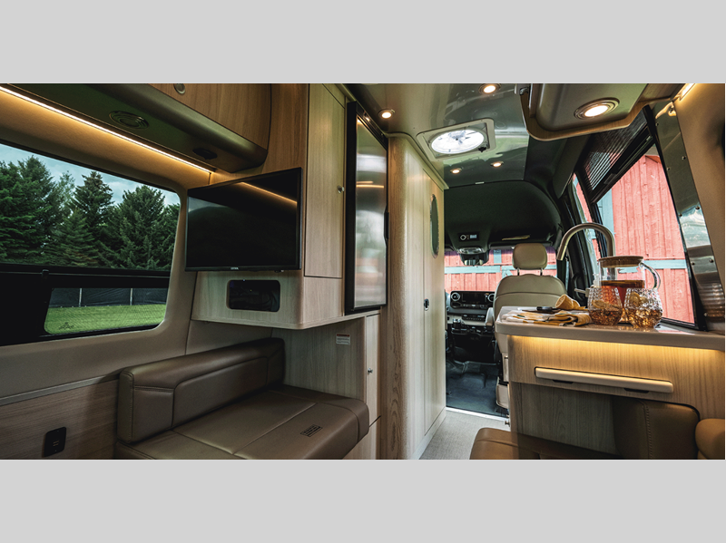 It all starts with a Mercedes-Benz Sprinter 2500 van chassis with a 2.0L 4-Cylinder high output diesel engine to power your adventures. The power sofa and side seats create the largest bed in its class, and the multiplex controls put you in control of the coach's functions with the push of a button. A spacious, versatile wet bath comes standard, along with a Corian kitchen countertop, Ultraleather seating, matte finish laminate cabinetry, and many more luxurious features.